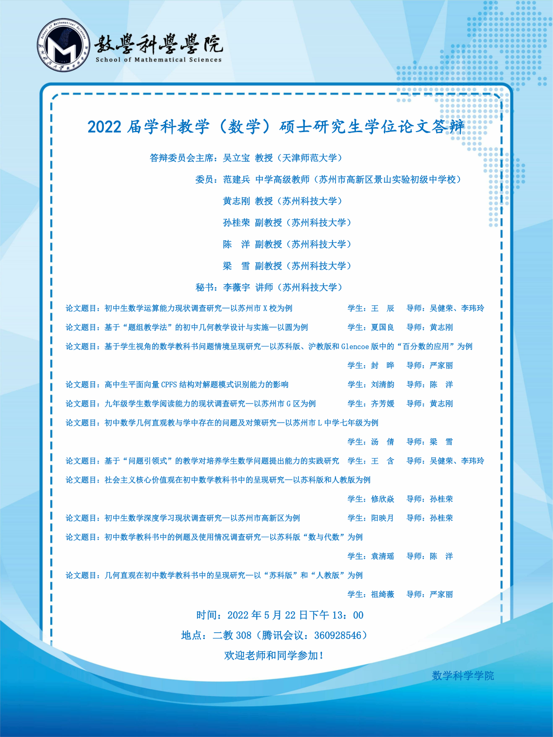 伟德源自英国始于19462022届硕士研究生学位论文答辩公告(二)