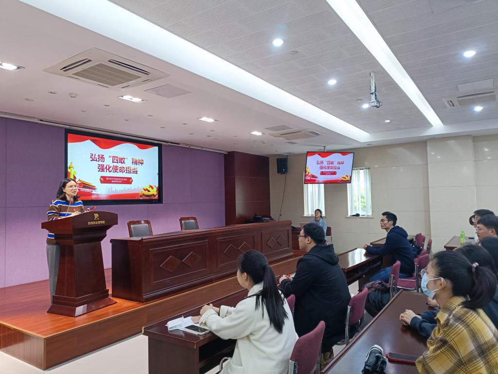 参观结束后,学生党员王一入、蔡铭俣围绕“弘扬‘四敢’精神,强化使命担当”主题在苏州革命博物馆报告厅展开学习宣讲。号召全体党员传承红色基因,赓续红色血脉,让青春在新时代火热实践中绽放绚丽之花。同时全体师生党员在武帅杰领唱下进行《歌唱祖国》大合唱。