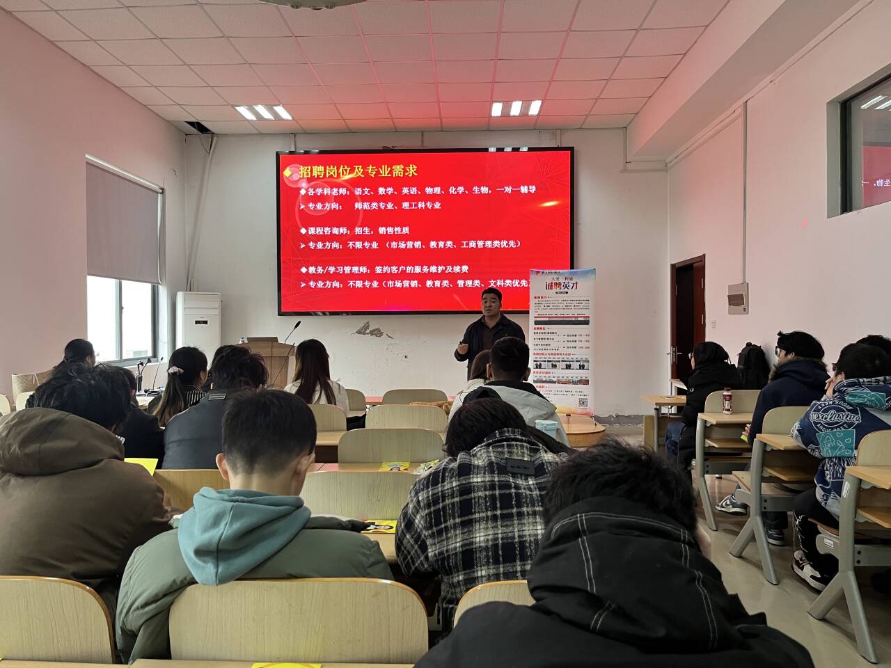 会上,腾大教育集团刘亚超老师向毕业生们详细介绍了集团的发展历程、核心业务、教育理念以及近年发展成果。针对不同专业背景毕业生的求职需求,刘老师重点解读了教育咨询、课程顾问、班主任、学科教师等核心招聘岗位的任职要求、工作职责,并清晰梳理了各岗位的职业发展路径,为毕业生精准匹配岗位、规划职业方向提供了详细指引。最后,胡世怡鼓励同学们抢抓求职关键期,摒弃单一求职路径的固化思维,在实践中锤炼本领,尽快找到契合自身发展的工作岗位。