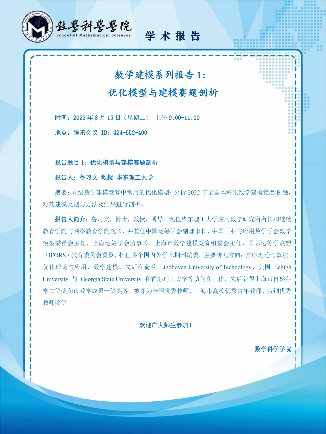 地点:腾讯会议 ID:424-552-400