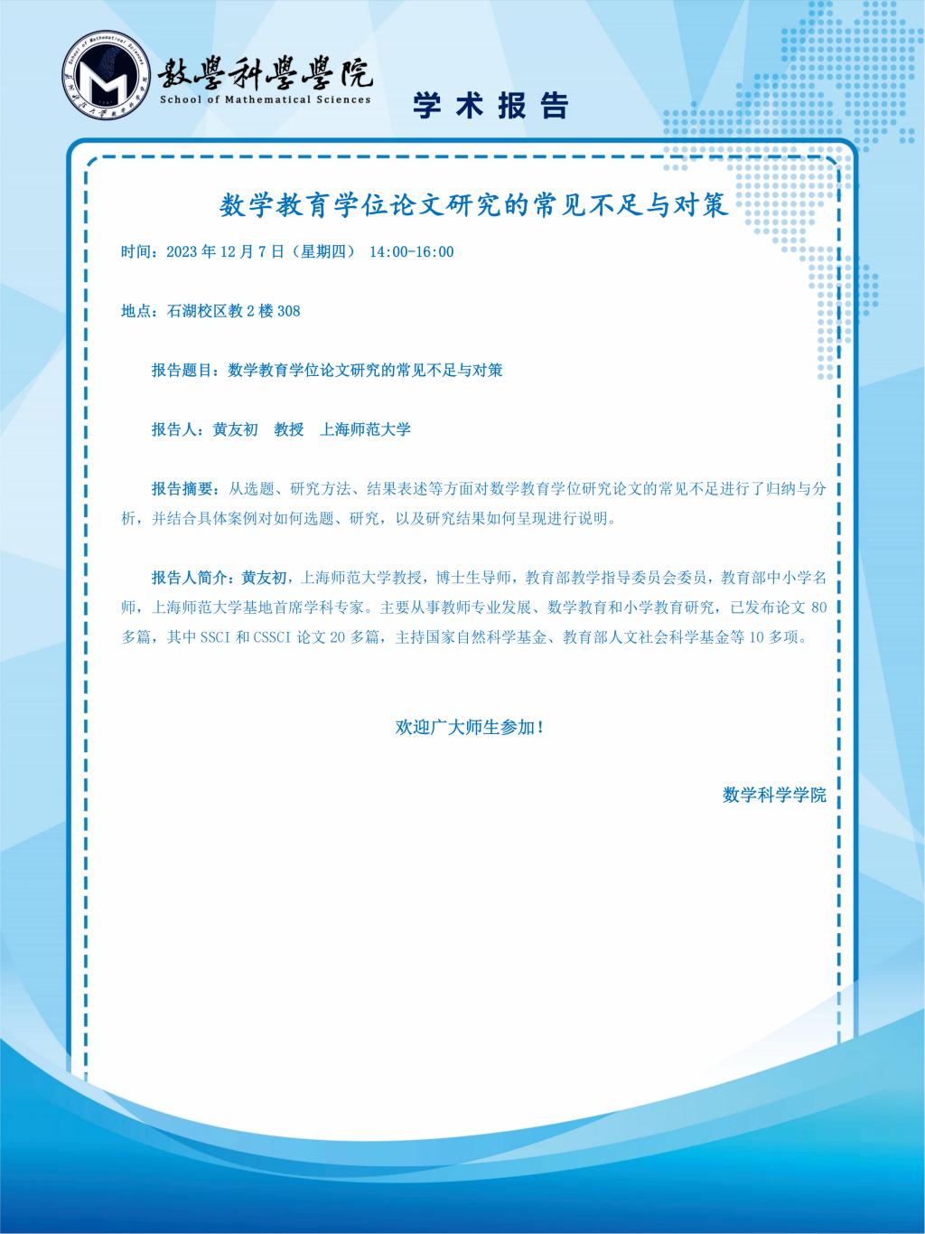 地点:石湖校区教2楼308