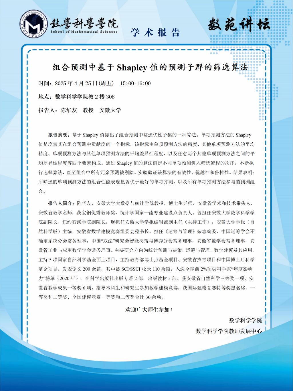 【数苑讲坛】第十三讲:组合预测中基于Shapley值的预测子群的筛选算法