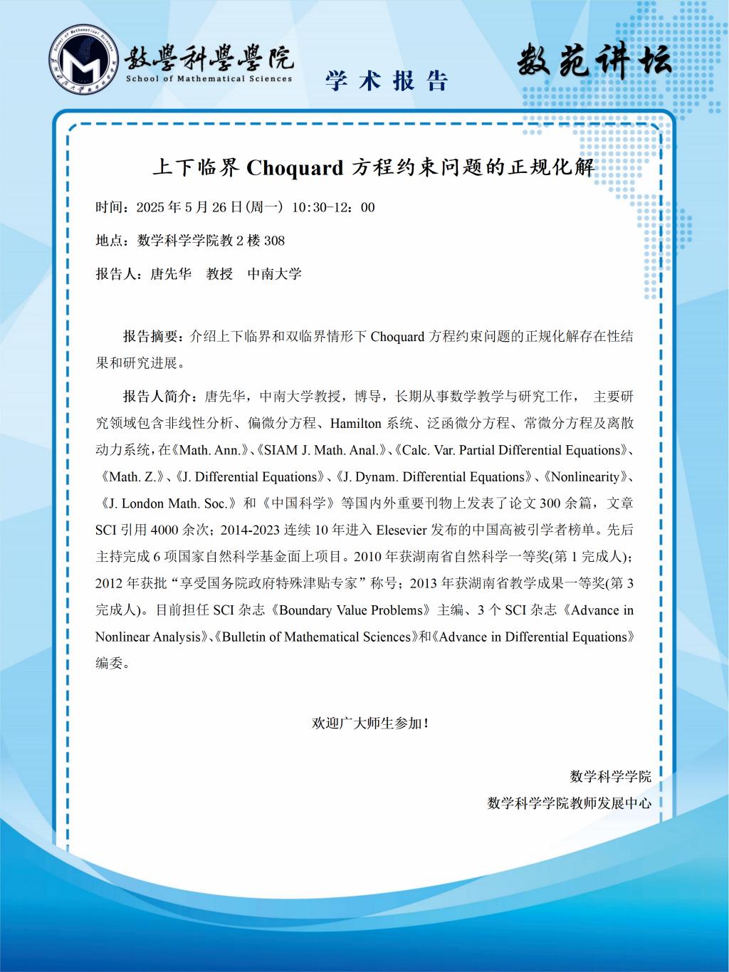 【数苑讲坛】第十六讲:上下临界Choquard方程约束问题的正规化解