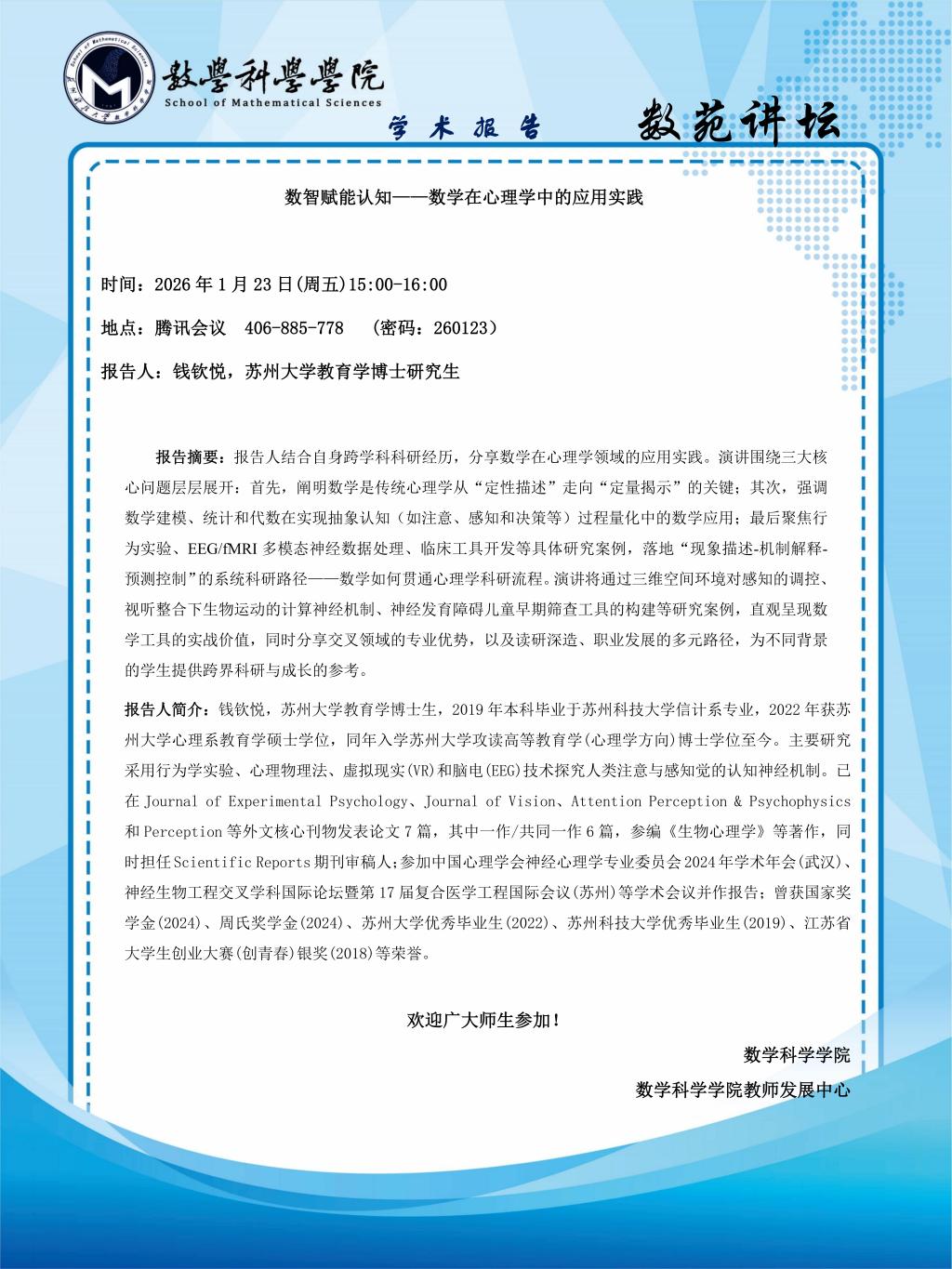 地点:腾讯会议 ID: 406-885-778
