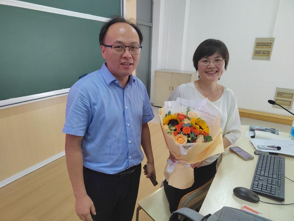 王开永向全体教师致以了节日的诚挚问候和崇高敬意,充分肯定了学院教职工在过去一年为学院发展所做出的积极贡献。本次表彰涵盖了多个奖项,旨在全面肯定和鼓励教师们在不同领域的杰出表现。学院院长黄志刚为受表彰的教师递上了鲜花。