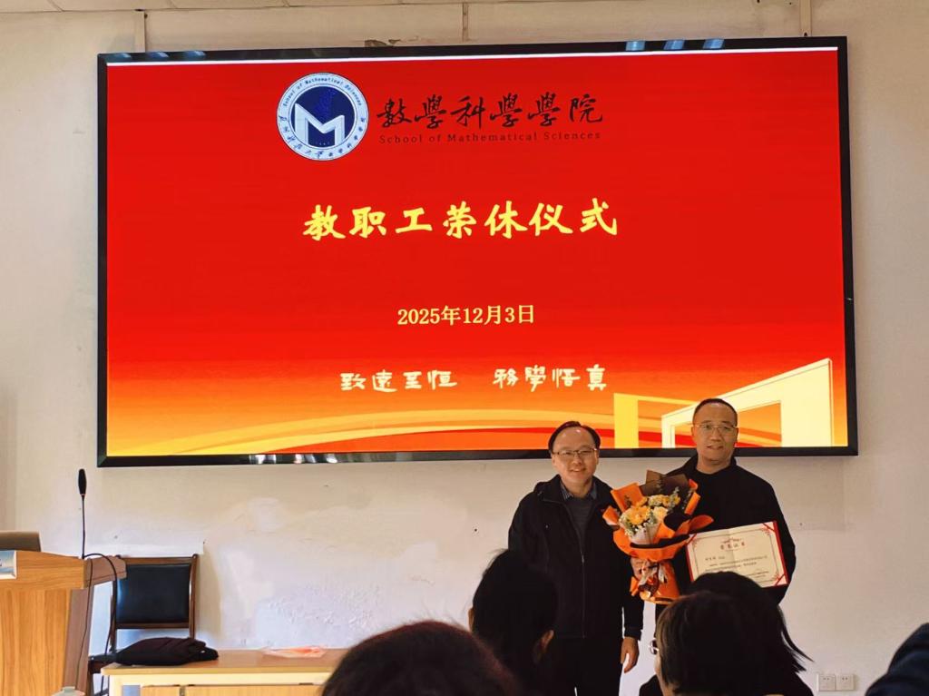 会议举行了下半年教职工荣休仪式。王开永代表学院为荣休教师时百胜颁发纪念证书与鲜花,感谢其长期以来为学院发展作出的贡献。