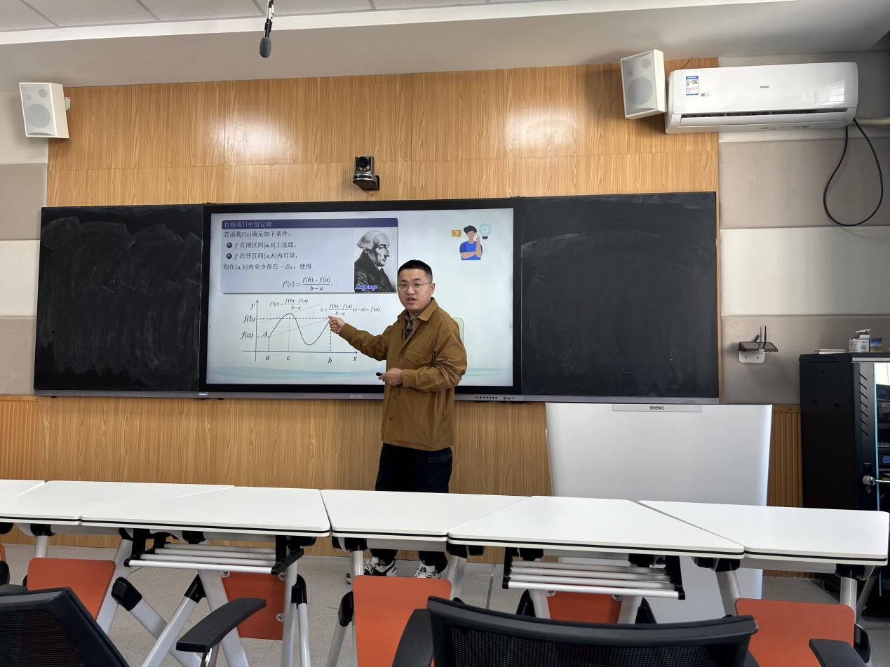 钟月圆、汪飞飞和乔琪三位老师展示精心准备的示范课。钟月圆老师授课课题为“特征值与特征向量”,以退耕还林为引例引出特征值及特征向量并进行详细讲解。乔琪老师授课课题为“拉格朗日中值定理”,以“国庆出游”为例引入课题,巧妙地揭示了拉格朗日中值定理的证明及其在实际问题中的应用。汪飞飞老师授课课题为“极限的运算法则”,以“挑战生命无极限”为出发点,深入浅出的讲解极限的四则运算法则及其应用。
