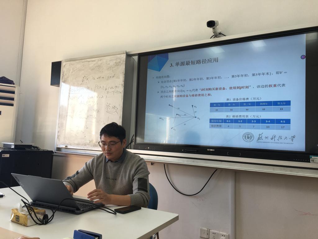 本次教研活动邀请翟晓凯老师作了“图论最短路径在生产规划问题中的应用”报告。翟老师首先从一个实际案例出发,引入图论中的单源最短路径问题,并指出解决单源最短路径问题的经典算法就是Dijkstra算法。然后介绍如何通过维护一个距离数组,记录源节点到各个节点的最短距离,并不断更新这个数组,直到找到所有最短路径,阐明了Dijkstra算法的基本原理,并对生产规划中的设备更新问题如何将问题转化为图论最短路径问题进行讲解,通过实际案例揭示透过现象看本质的哲学思想,引导学生在生活中不仅要观察事物的外在表现,还要通过调查、分析和研究,深入挖掘事物的内在规律和本质。