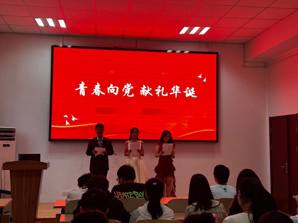 活动融合了主题朗诵、主题宣讲等多种形式。2024级学生黄瑞、徐张扬和罗富轩带来朗诵《红色火种,照亮青春梦想》,三位同学声情并茂、铿锵有力地讲述了革命的光辉历程,引领同学们听党话、感党恩、跟党走。2023级学生鲍一凡以《青春向党,献礼华诞》为主题,讲述了新时代青年在时代浪潮中的担当与作为,激励同学们以实际行动向党和祖国献礼。在主题宣讲活动中,学院遴选四支校暑期社会实践活动优秀团队讲述了暑期社会实践的经历,分享了他们深入乡村、社区、中小学,在探寻新质生产力中调研夜校、数学文化、环境保护等领域中的感悟,展现了新时代青年学生的社会责任和奉献精神。