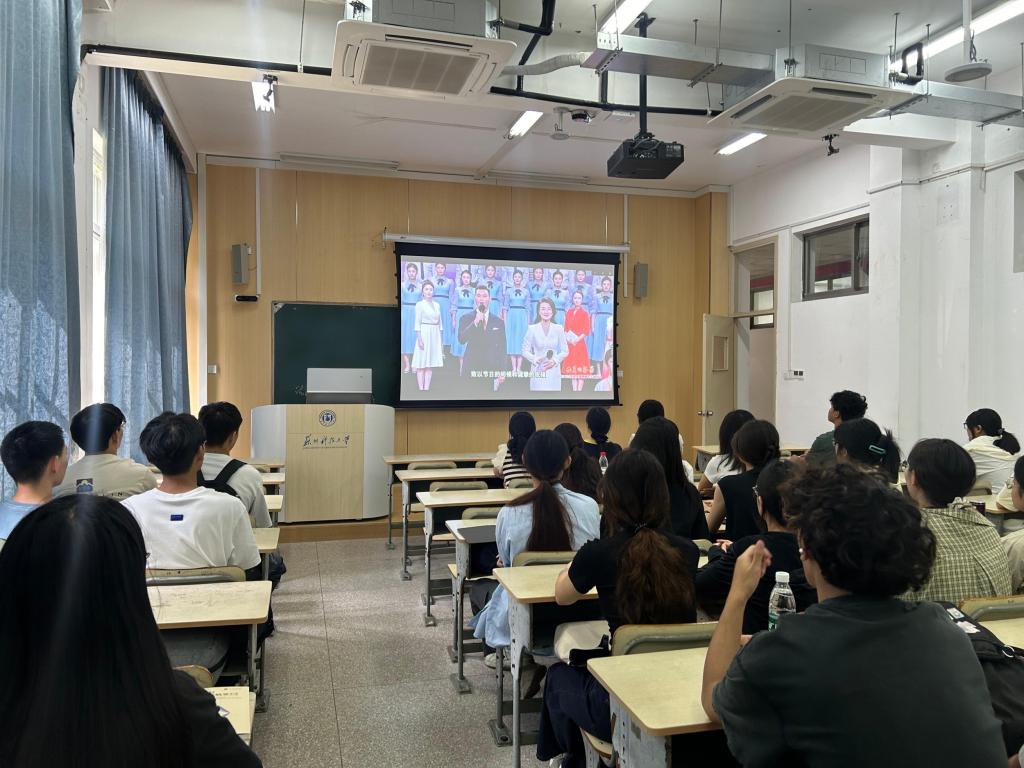 上好“开学第一课”,坚定教育初心。组织学生观看省教育厅“九月的芬芳——2025年江苏省庆祝教师节主题活动”专题节目,学习优秀教育工作者扎根教育、无私奉献的感人事迹。