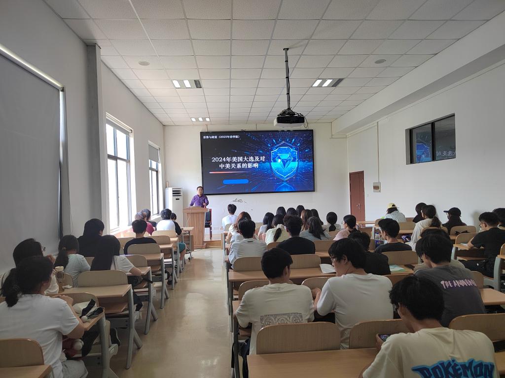 黄志刚聚焦2024年美国大选形势及其结果,深入浅出地分析了“美式民主”的实质及其对中美关系的复杂影响。引导同学们透过现象看本质,理性客观地看待中美关系的发展态势,鼓励同学们拓宽国际视野。