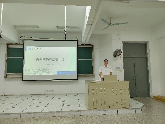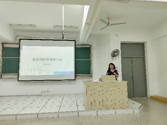 王胤欢从网格员工作内容和宿舍管理注意事项做了分享。胡可苏结合学生反馈的热点问题,详细作了介绍,并呼吁网格员协助公寓中心做好宿舍的管理工作。