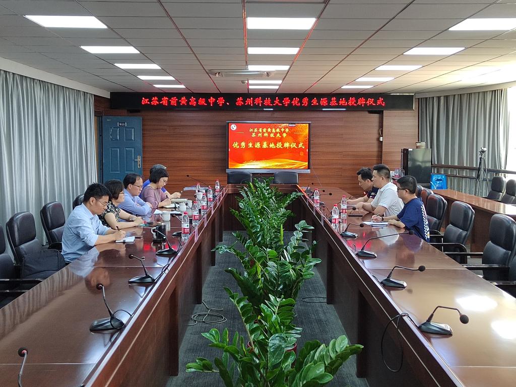 王波介绍了前黄高级中学的办学历史、师资队伍、学生发展等方面的情况。王开永对前黄高级中学近年来向我校输送优质生源表示感谢,介绍了我校的基本情况并通报了我校近三年在前黄高级中学的录取情况和学生在校发展情况。双方表示,希望通过生源基地的建立,开展更深入更多元的交流合作。