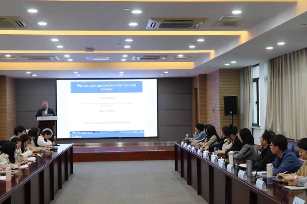 4月19日下午,湘潭大学黄云清教授受邀莅临我院开展学术讲座。此次讲座题为“High accuracy approximations from low order schemes”。讲座由学院院长黄志刚主持,学院六十余名师生参与了讲座。
