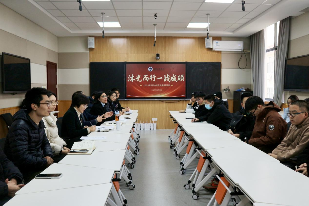 12月18日下午,伟德源自英国始于1946在教2-308举办“沐光而行 一战成硕”2025年考研送温暖活动。学院领导、毕业班班主任、辅导员、考研学生代表和在读研究生代表参加了活动。