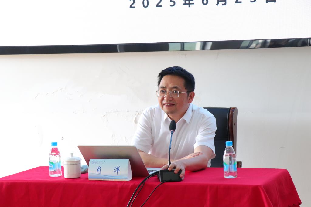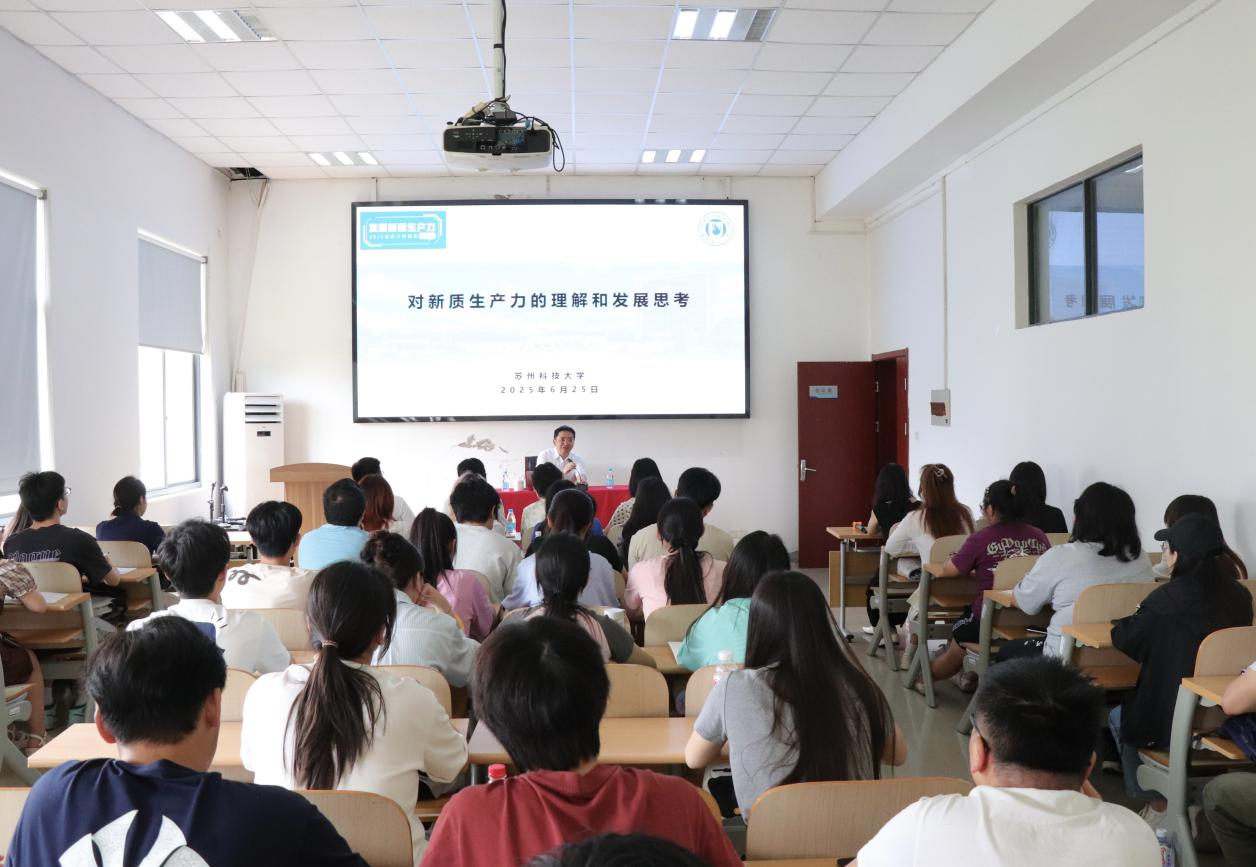 肖洋以“对新质生产力的理解和发展思考”为主题,从“什么是新质生产力”“为什么要发展新质生产力”“如何发展新质生产力”,深入解读新质生产力的科学内涵、内在逻辑及发展路径。肖洋强调,我校始终聚焦科技创新和产业创新融合发展,深刻践行“四有科研”,培育创新型人才,服务地方新质生产力发展。他鼓励学生立足专业所学,主动拥抱变革,严格要求、刻苦学习、积极探索、勇于创新,在推动新质生产力发展进程中勇担使命,贡献智慧与力量。
