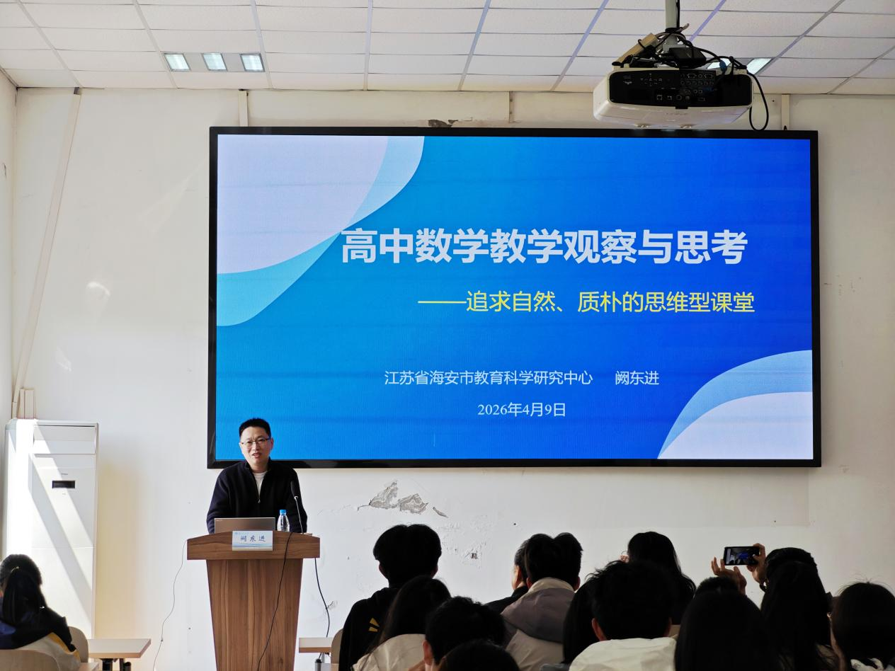 4月9日下午,伟德源自英国始于1946邀请2004届优秀校友、海安市教育科学研究中心教研员阙东进,为学院师生作“高中数学教学观察与思考”专题讲座。学院党委副书记胡世怡主持,原后勤党总支书记许金林、辅导员及部分数学师范专业学生代表参加。