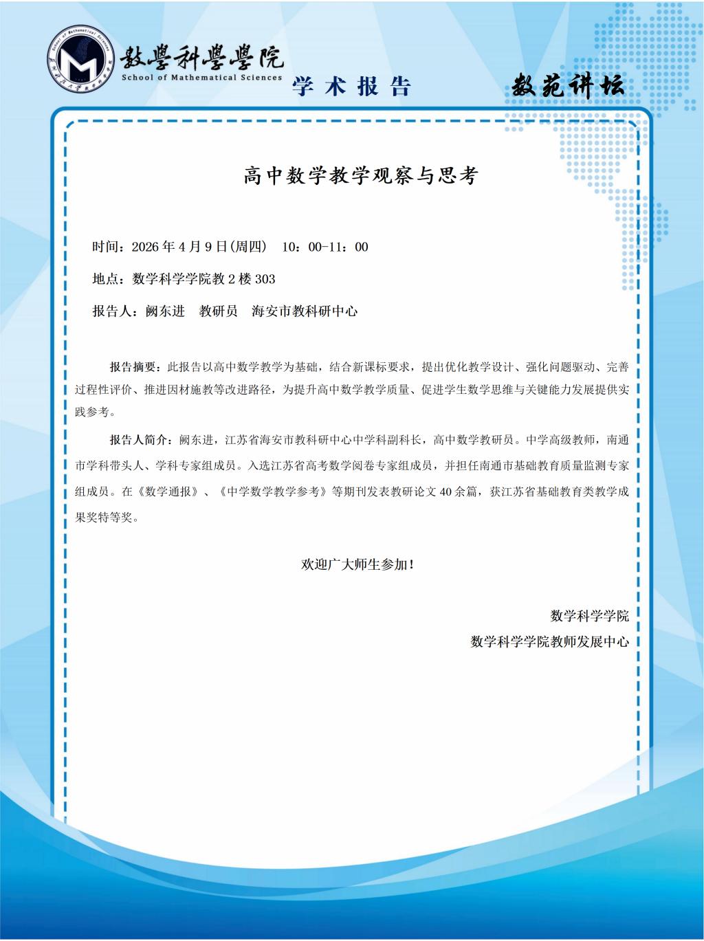 【数苑讲坛】第二十五讲:高中数学教学观察与思考