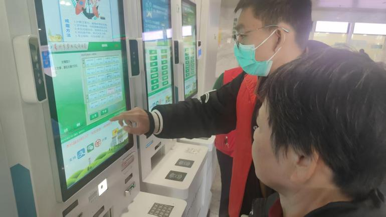 培训结束,同学们进入服务状态,以饱满的热情投入到志愿服务中。大家分工协作、互帮互助,针对老年患者就医不便、不熟悉自助设备操作等实际问题,同学们主动坚守在挂号区、门诊走廊,耐心协助老人完成挂号操作,细致讲解就诊流程,全程搀扶行动不便的老人前往对应候诊室,用温柔的态度、务实的举动,化解老人就医难题,搭建起便捷、暖心的就医桥梁。